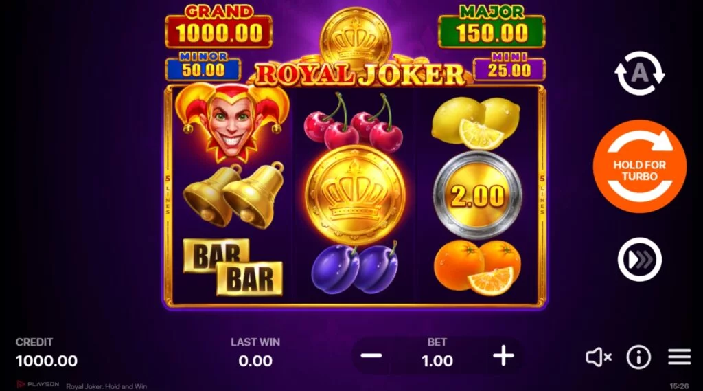 La version démonstration gratuite de Royal Joker Hold and Win est accessible depuis le début de notre présentation. Cet essai du titre Playson offre la possibilité d'explorer toutes ses options en toute sécurité, sans aucun engagement pécuniaire. C'est l'occasion idéale pour se familiariser avec l'univers fruité, les icônes traditionnelles et les mécaniques Hold and Win caractéristiques avant de passer aux mises réelles.
